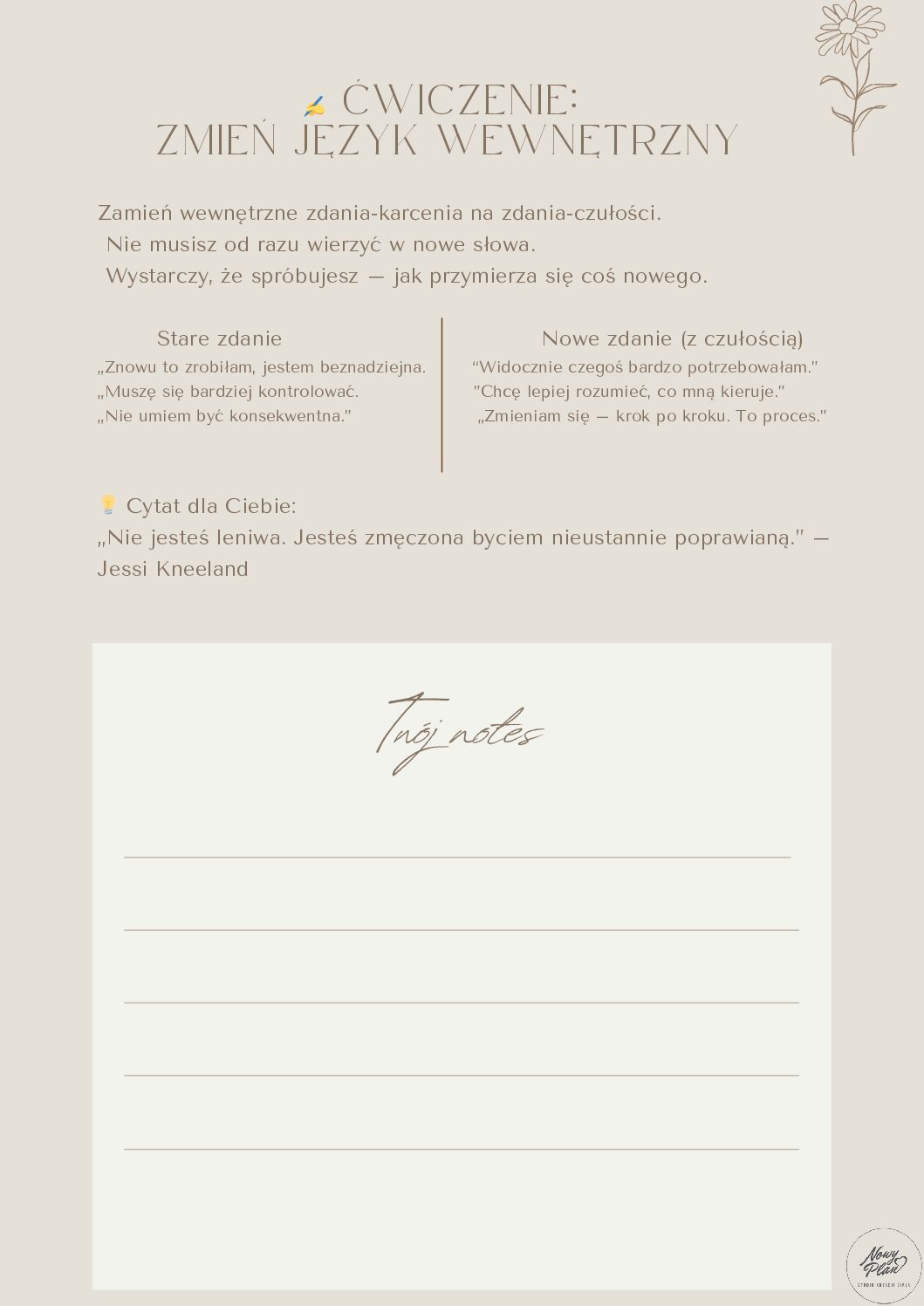To nie jest książka o tym, co „wolno” jeść. To przewodnik po myślach, które nami kierują. Znajdziesz tu pytania, ćwiczenia, przykłady z życia – i dużo czułości. Bo wierzę, że właśnie z niej wyrasta trwała zmiana.